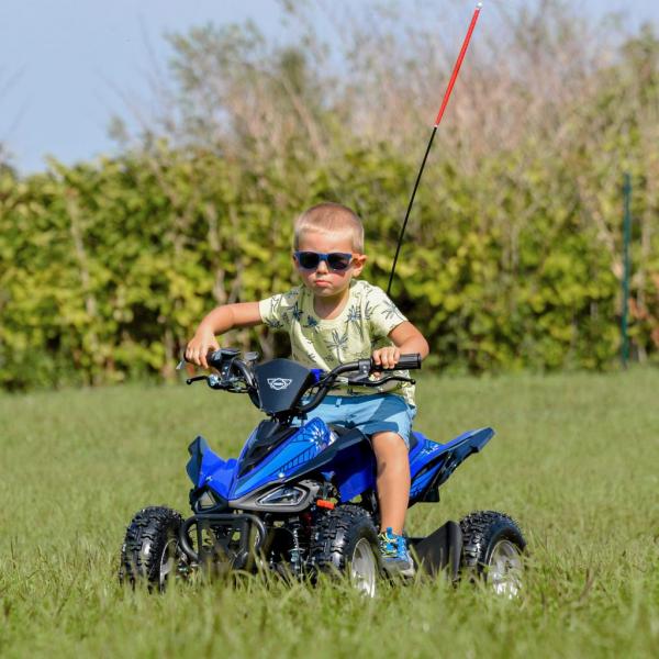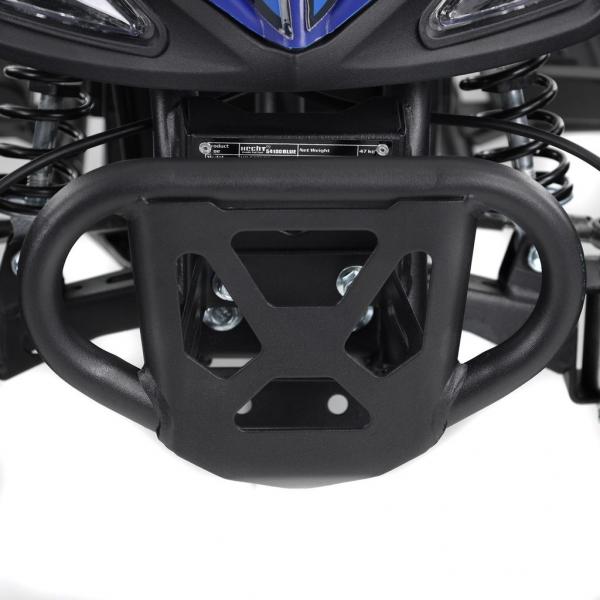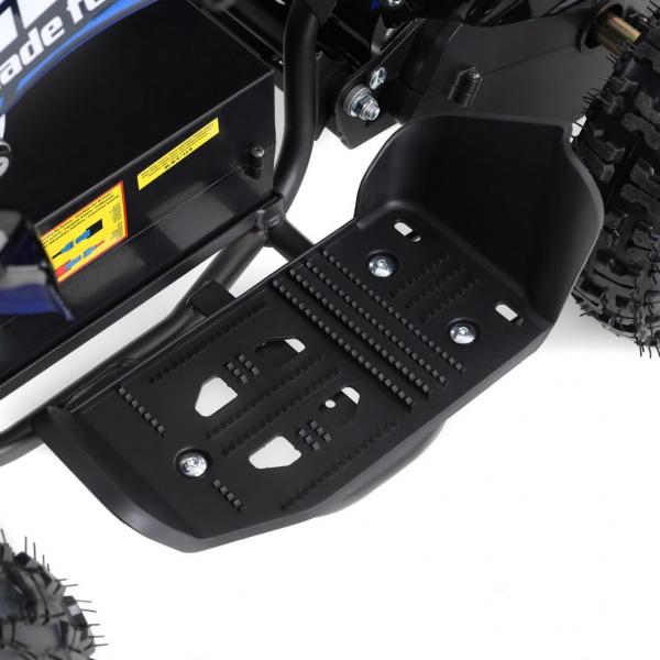Electric ATV with 1000 W engine. Power supplied by 36 V battery with 12 Ah capacity. Metal frame. Speed max. ca. 25 km/h. Equipped with big 6" wheels. Weight 42 kg. Max. load capacity 65 kg. Battery indicator, three speed switch, drive-chain. Max. driving range 13 - 18 km. Charging time 8 hours. Dimensions: length 100 cm x width 59 cm x height 60 cm.