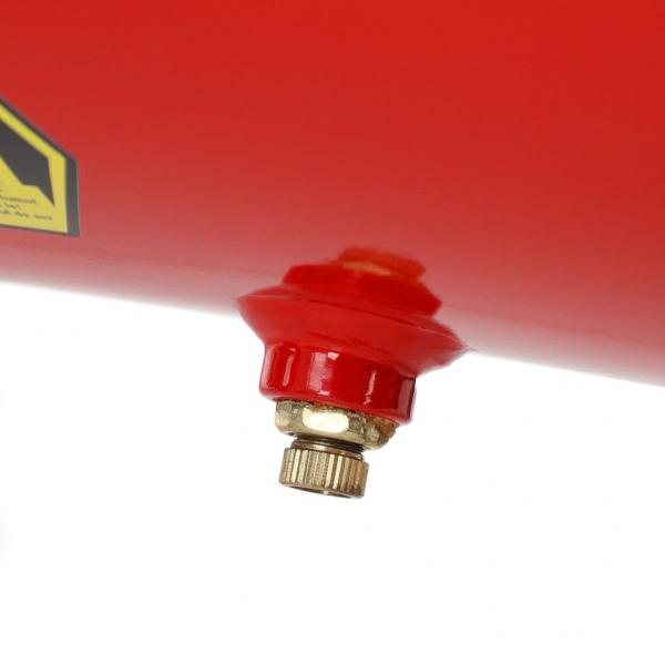 The machine is equipped with a large 100-liter tank, enabling work with a higher air volume and stable pressure up to 8 bars. The compressor is built on a robust chassis with wheels for easy manipulation, with front wheels additionally equipped with a brake for greater stability.