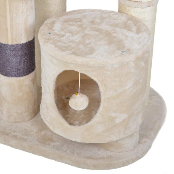 Когтеточка и место для отдыха для кошек PROMINENT SIMBA B (бежевый). Изготовлен из плюша и натурального сизаля. Размеры 55 x 65 x 100 см. Плюш 400 г/м2. Веревка для когтеточек из сизаля шириной 4 мм. Диаметр скребка 145 мм.