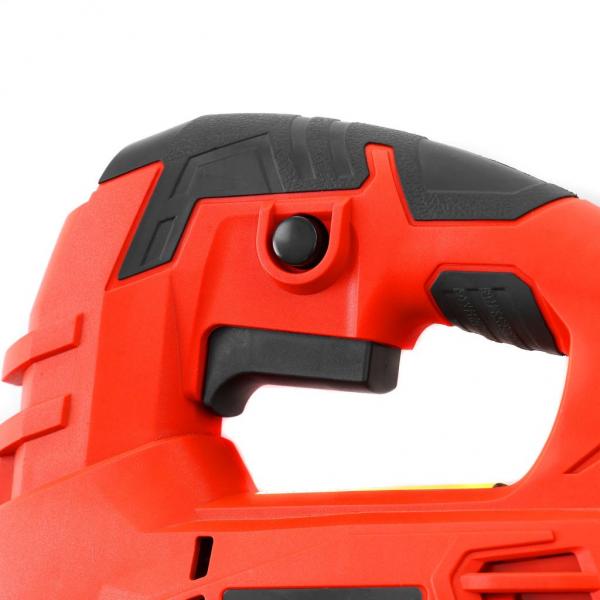 Electric jig saw with an input power of 650 W. Speed without load 800 - 3000 rpm. Cutting depth 65 mm (wood), 8 mm (iron). Saw blade, dust adapter and guide ruler included.