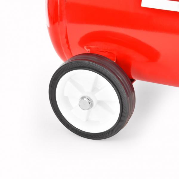 Мощность компрессора 750 Вт, 230 В / 50 Гц. Выход воздуха составляет 132 л / мин. Максимум давление 8 бар. Резервуар 24 литра. Автоматическое включение и выключение. Манометр. Вес 19 кг. Очень тихий и не требующий обслуживания.